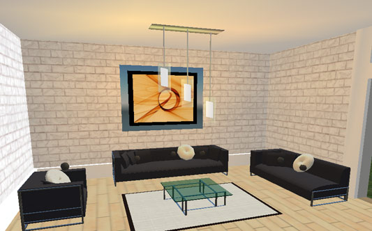 ![]() Sala de Estar com Painel Fractal - Impressão fotográfica sobre acrílico - Tamanho: 4 metros