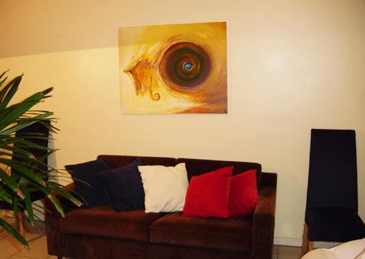 ![]() Sala de Estar com Painel Fractal - Impressão fotográfica sobre acrílico - Tamanho: 4 metros